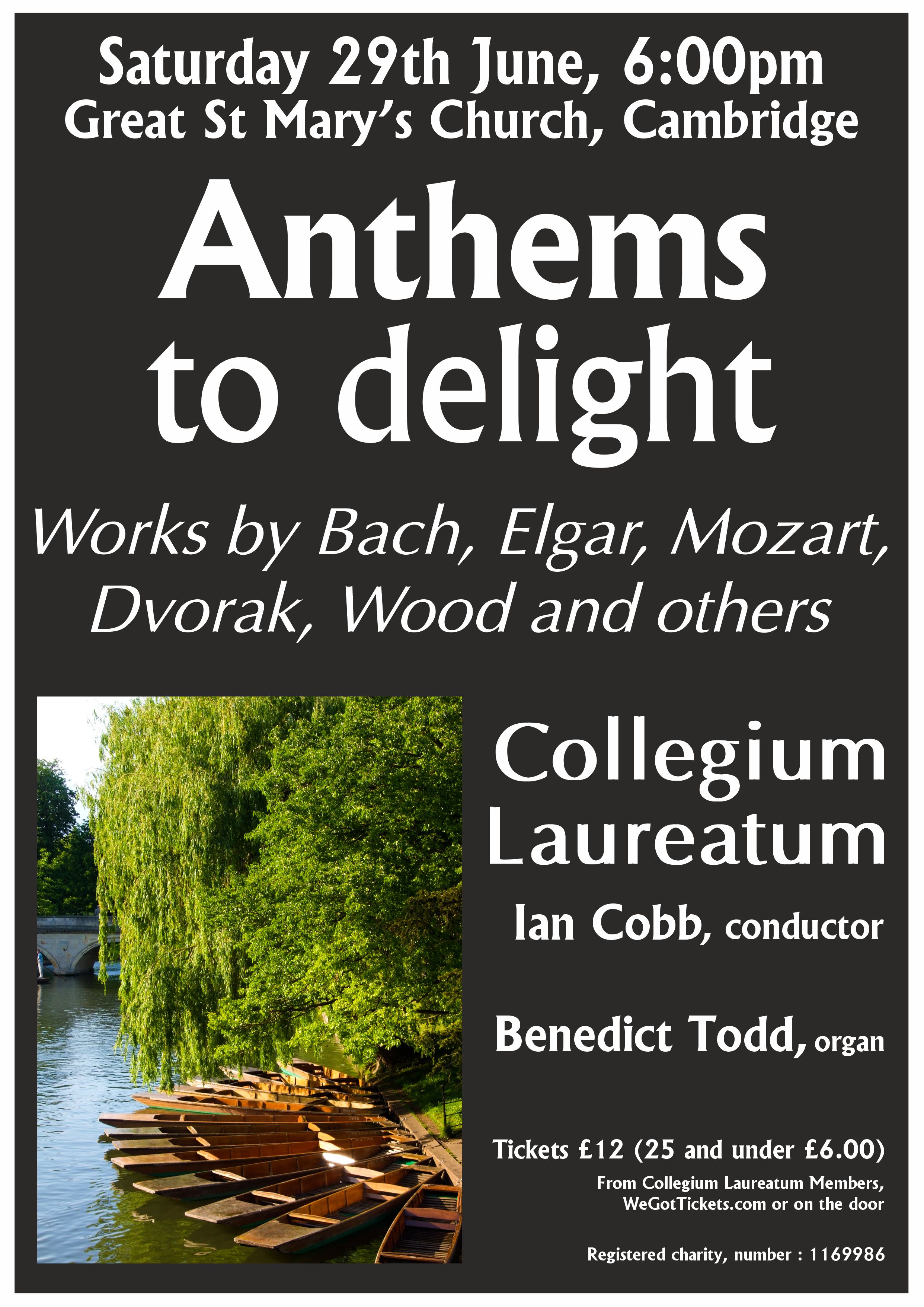 A variety of Anthems by Bach, Dvořák, Elgar, Mozart and Wood amongst others